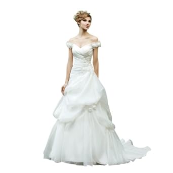 Surpliced bodice with beaded rhinestone accents the slimming figure.Organza pick-ups shows a sense of airy.Capped sleeves with handmade flowers creats a slimming effect.