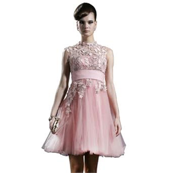 GEORGE BRIDE High Neck Fit Lace Bodice Short Tulle Cocktail Dress With Satin Band