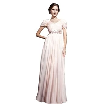 GEORGE BRIDE Pink Sheath/ Column V Neck Floor-Length Chiffon Evening Dress With Beaded Appliques