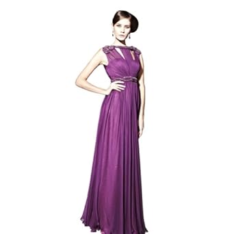 GEORGE BRIDE Sheath/ Column Off Shoulder Floor-Length Purple Chiffon Evening Dress