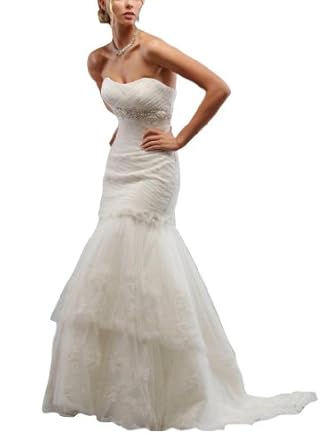 GEORGE BRIDE Strapless Shirred Layers Tulle With Embroidered Lace Double Tier Mermaid Wedding Gown