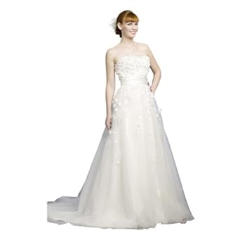 GEORGE BRIDE Strapless Tulle Satin Flower Embelishments Trickling Down Ballgown Skirt Wedding Dress