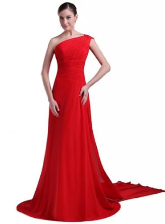 Orifashion Elegant One Shoulder Red Chiffon Prom/Evening Dress with Chapel Length Train (Model EDSHER0122)